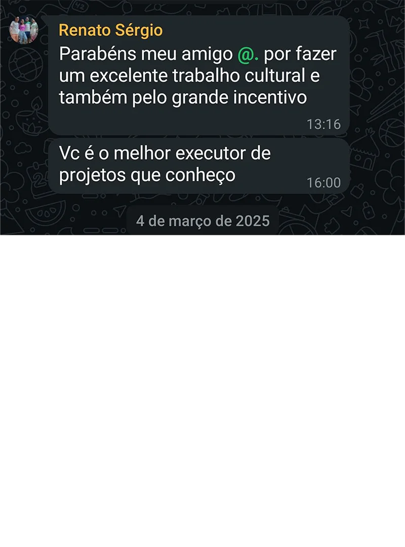 Ao longo dessa caminhada, já captei mais de R$ 1 milhão em recursos públicos e aprovamos 40 projetos culturais — sendo 19 apenas em 2024.